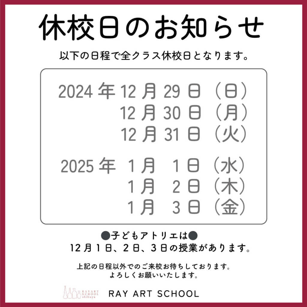 年末年始の休校日のお知らせ